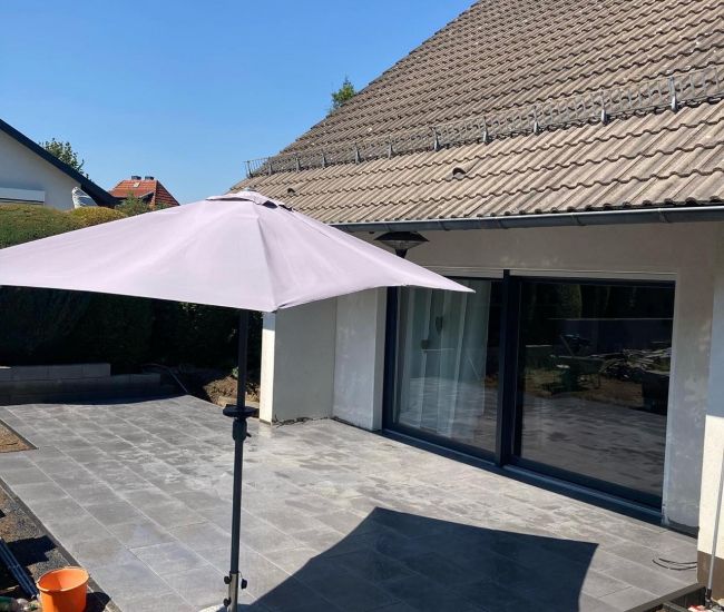 • Wir planen und bauen Terrassen aus Naturstein, Beton oder anderen Materialien, die perfekt zu Ihrem Garten passen. Jede Terrasse wird auf Ihre Bedürfnisse zugeschnitten.
